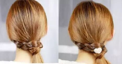 步骤2:将发辫就马尾扎发处围绕起来,用夹子固定好,最后用一款精美的头饰装饰!