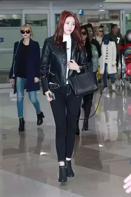 All in black,最正统的穿法莫过于是全身黑的搭配,别忘了要把上衣扎进裤子里,系上皮带简直太帅。